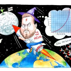 Increasingly caricature artists are switching to digital media these days and the reasons are obvious. It is a very flexible way to work; changes can be made and undone at the click of a button, elements can be imported and recycled, whole backgrounds can be created by importing a photo. In some cases the ‘artist’ does little more than apply photoshop filters to a photo of the subjects face. If this ticks the box for you then that’s fine – why pay more?