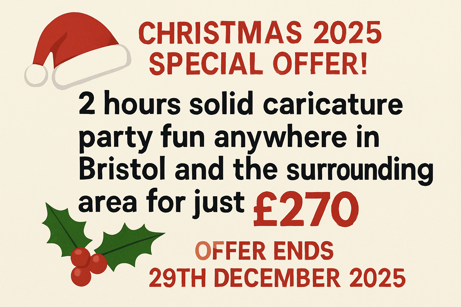 Christmas 2025 special offer! 2 hours solid caricature party