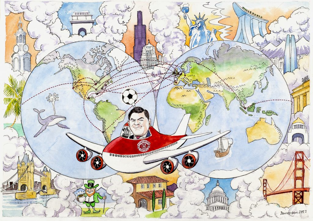 Years-of-service awards and retirement gifts can feel routine. A custom caricature adds fun and storytelling. Here is a one I created for an outgoing, globetrotting CEO from Spencer Stuart. It’s meaningful, memorable, and proudly display-worthy.