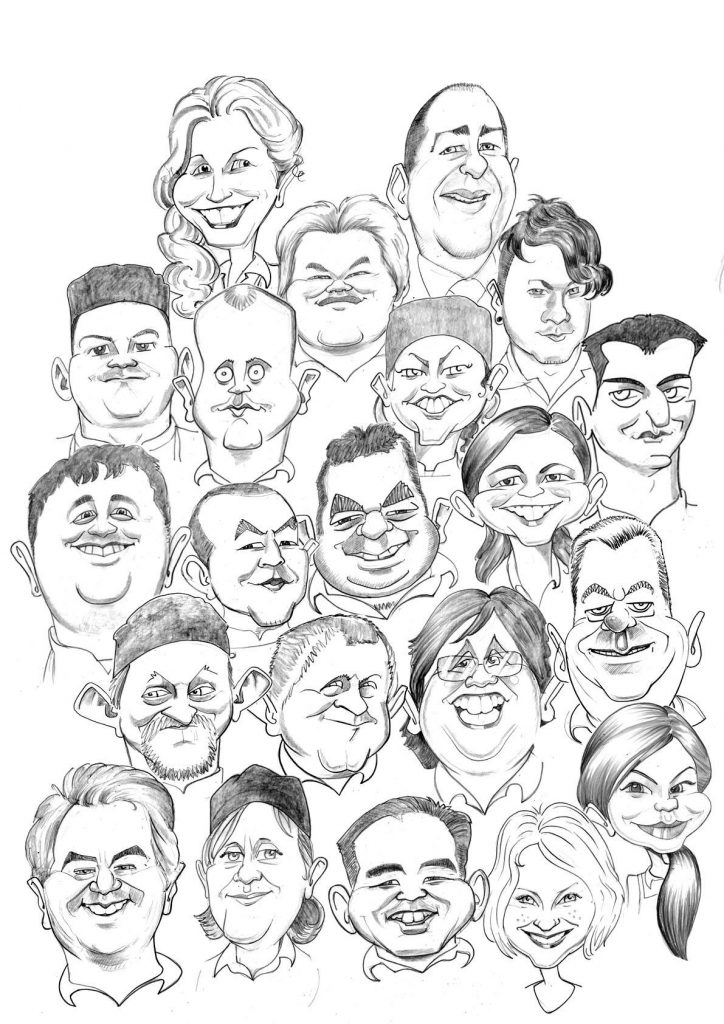 Branded merch, generic giftware and bottles of plonk are lovely and cheap however, if you are looking for a way to show genuine appreciation to colleagues and team members then nothing says it better than something unique and hand-made. From executive portraits to full-team illustrations, Corporate caricature commissions bring personality, humor, and warmth into professional spaces — with a touch of class!